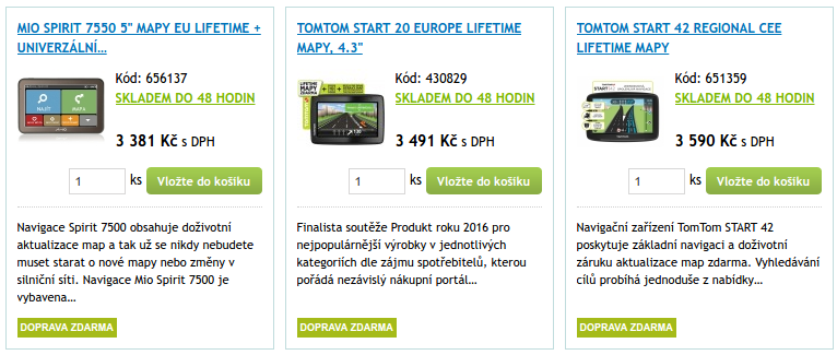 Garmin nüvi 1200 navigaceMIO Spirit 5400 GSP navigaceMIO Spirit 5450 navigaceMIO Spirit 5670 navigaceMIO Spirit 7500 GPS navigaceMIO Spirit 7550 navigaceMIO Spirit 7670 navigaceMIO Spirit 8500 navigaceSygic GPS NavigaceTomTom START 20 Europe navigaceTomTom START 20 Regional LIFETIME navigaceTomTom START 25 Regional navigaceTomTom START 42 Europe navigaceTomTom START 42 Regional CEE LIFETIME navigace