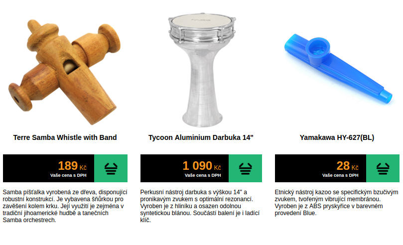 Bubenické paličky Goodwoodbubínek Mapex MPST0554bubínek Mapex MPX Maple 14bubínek Stable SD-103Etnická píšťala Terre SambaEtnická píšťala Yamakawa HY-627kravský zvonec stableMalý bubínekMeinl HT1314 Chrome timbalyMeinl Stand-Up CajonPerkuse pro děti Bobo BOBOTUBESPerkuse pro děti staggRituální perkusní nástroj Stagg WRA-145Sruční bubínek Planet MusicRuční tamburína Planet MusicRuční tamburína Stable J993BKsnare bubenTamburína s blánou Planet MusicTerre Handshaker ChachaTycoon African DjembeTycoon Ritmo Series Bonga