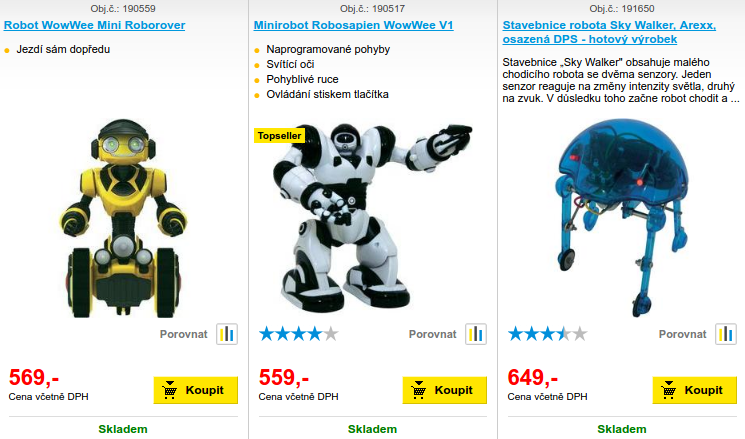 Displej pro robota C Control RP6 ArexxFotbalový robot Arexx SR-129HexBug Roboter Nano svítícíHexBug Roboter ScarabMinirobot Robosapien WowWee V1Minirobot Robosapien WowWee V2programovatelný Arduino robotRobot WowWee Mini RoboraptorRobot WowWee Mini RoboroverStavebnice Arduino robotaStavebnice dětského robota ArexxStavebnice robota RP6 V2 C-ControlStavebnice robota Sky WalkerStavebnice robotické ruky Velleman KSR10Tyrannosaurus WowWee Roboraptor