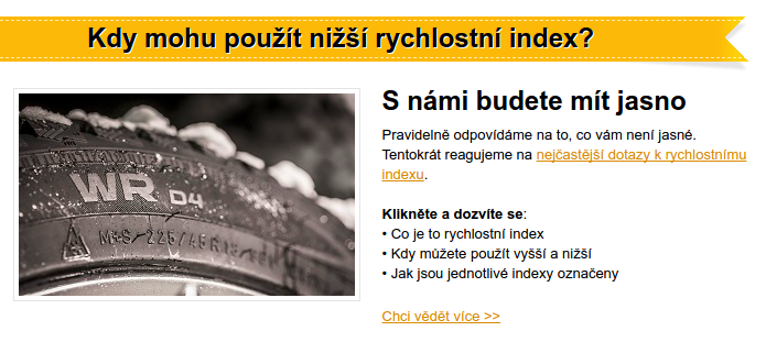 Víte, kdy můžete použít nižší rychlostní index? TADY je odpověď.