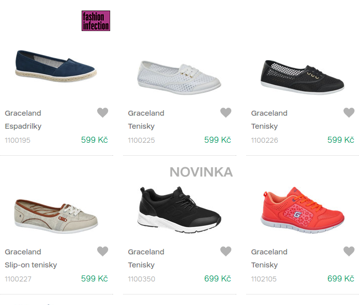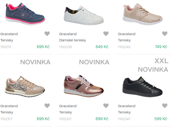 Baleríny černé s flitryBaleríny černé s mašlíBaleríny Graceland černébaleríny šedéDámské tenisky Graceland bíléEspadrilky Graceland modréSlip-on tenisky Graceland hnědéTenisky Graceland bíléTenisky Graceland černéTenisky Graceland dámskéTenisky Graceland modro růžovéTenisky Graceland oranžovéTenisky Graceland perforované bíléTenisky Graceland perforované černéTenisky Graceland stříbrnéTenisky Graceland zlaté