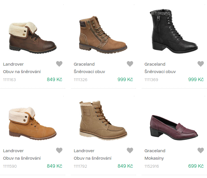 AM SHOE Polobotky koženéAM SHOE Polobotky modréBobbi-Shoe dětské bačkoryCasa mia DOMÁCÍ bačkoryCortina SNĚHULE šedéCupcake Couture DĚTSKÉ domácí botyGallus šněrovací boty koženéGraceland LODIČKY černé lakovanéGraceland Lodičky červenéGraceland LODIČKY na širokém podpatkuGraceland Lodičky nízké černéGraceland Lodičky s páskem černéGraceland Lodičky zlatéGraceland Mokasíny vínovéGraceland ŠNĚROVACÍ BOTY černéGraceland ŠNĚROVACÍ boty hnědéLandrover ŠNĚROVACÍ boty hnědéVenice ESPADRILKY modréVenice Kotníkové boty hnědé